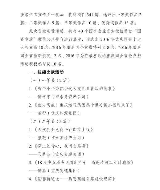 重慶國資網(wǎng)絡(luò)新聞寫作比武活動獲獎情況通報(bào)
